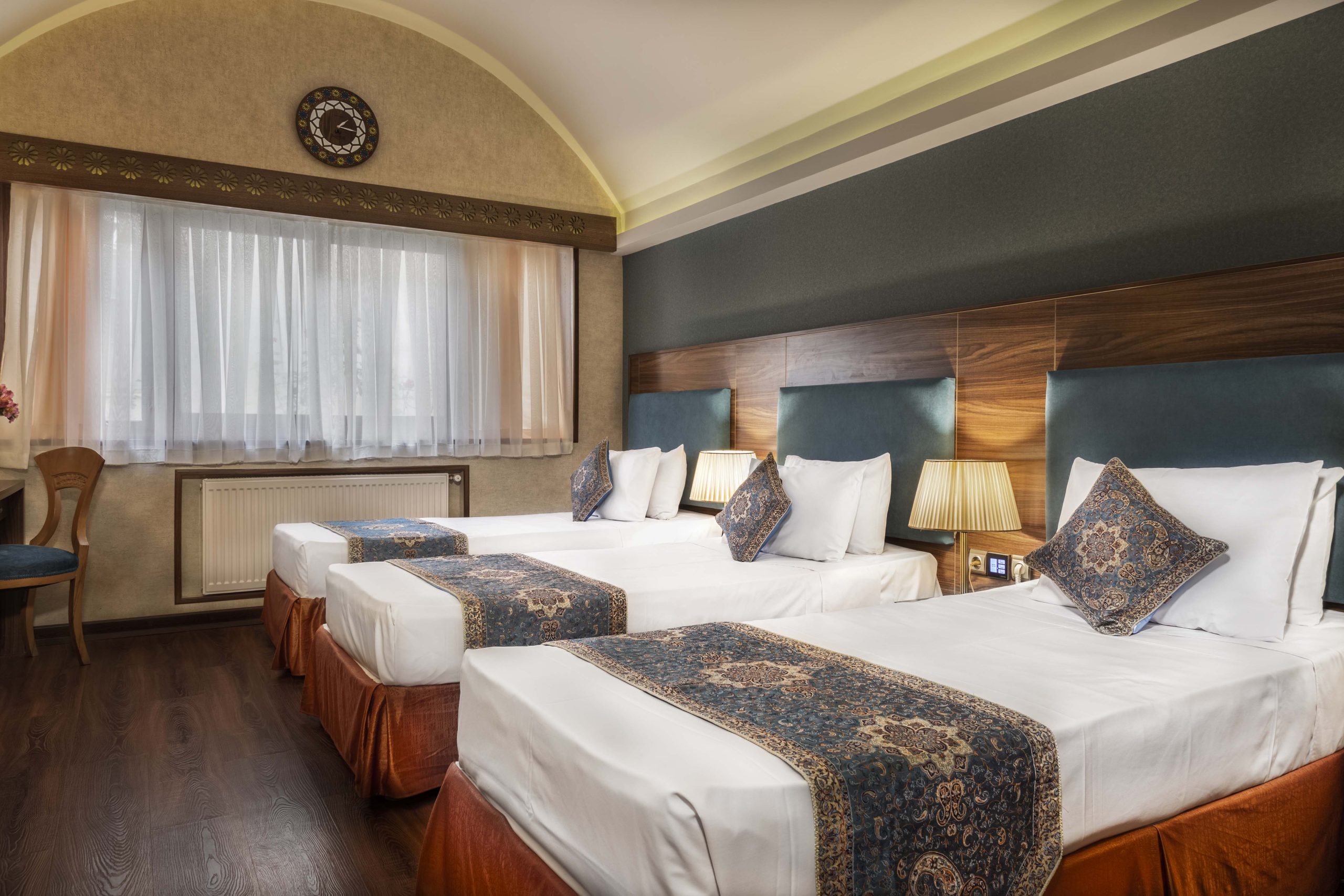 قوانین رزرو : ارائه مدارک شناسایی معتبر (شناسنامه و کارت ملی) برای همه افراد و مدارک محرمیت (شناسنامه) برای زوجین الزامی است به منظور استعلام پذیرش صیغه نامه به عنوان مدرک محرمیت لطفا با پشتیبانی تماس حاصل فرمایید. نرخ اقامت میهمان غیرایرانی متفاوت است. به منظور استعلام دقیق نرخ لطفا با پشتیبانی تماس حاصل فرمایید. مدارک مورد نیاز برای پذیرش میهمان خارجی شامل اصل پاسپورت به همراه ویزا و مهر ورود به ایران با تاریخ اعتبار و انقضا میباشد امکان تغییر نام برای رزرو ثبت شده فراهم نمیباشد و اتاق فقط به شخصی که رزرو به نام ایشان باشد تحویل میگردد. در حین ثبت رزرو مشخصات تمامی میهمانان باید به درستی درج گردد. حداقل سن جهت اخذ اتاق بصورت انفرادی ۱۸ سال الزامی میباشد. تمامی افراد بزرگسال داخل یک اتاق می بایست محرم باشند. پذیرش ملیت ایرانی و خارجی در یک اتاق/ سوییت/کلبه/ آپارتمان/ ویلا به شرط احراز محرمیت است. مجموعه از پذیرش حیوانات خانگی معذور است. طبق قوانین هتل در صورت نقص مدارک شناسایی و عدم احراز هویت یا عدم رعایت هر یک از قوانین ذکر شده امکان پذیرش وجود ندارد و هزینه پرداخت شده مسترد نمی گردد. در این خصوص مسئولیتی متوجه هتل یا این شرکت نیست. هزینه اقامت کودک زیر 2 سال در صورت عدم استفاده از سرویس خواب اضافه رایگان می باشد. هزینه اقامت کودک با بازه سنی 2 تا 7 سال معادل 50 درصد سرویس خواب محاسبه می شود. کودک بالای 8 سال بزرگسال محسوب می شود و هزینه اقامت وی کامل محاسبه می شود. اقامت رایگان و نیم بها فقط برای یک کودک در نظر گرفته می شود. لازم به ذکر است که تمامی افراد شامل کودکان و بزرگسالان در صورت درخواست استفاده از تخت اضافه مشمول پرداخت مبلغ کامل تخت اضافه و بدون تخفیف می باشند. قوانین کنسلی : - در صورت اعلام کنسلی، از 30 تا 25 روز تا تاریخ ورود به هتل، 15% شب اول توسط هتل کسر خواهد گردید. - در صورت اعلام کنسلی، از 24 تا 20 روز تا تاریخ ورود به هتل، 25% شب اول توسط هتل کسر خواهد گردید. - در صورت اعلام کنسلی، از 19 تا 10 روز تا تاریخ ورود به هتل، 50% شب اول توسط هتل کسر خواهد گردید. - در صورت اعلام کنسلی، از 9 تا 5 روز تا تاریخ ورود به هتل، 75% شب اول توسط هتل کسر خواهد گردید. - در صورت اعلام کنسلی، در کمتر از 5 روز تا تاریخ ورود، مشمول 100% جریمه کل مبلغ یک شب خواهد گردید. مبلغ دقیق کنسلی رزرو در ایام پیک و غیر پیک ، با توجه به تفاوت نرخ کنسلی در ایام مختلف و هتل های مختلف، بعد از استعلام از هتل مشخص می گردد.