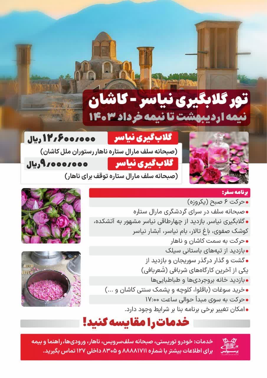 گلابگیری نیاسر (صبحانه سلف مارال ستاره توقف برای ناهار) |